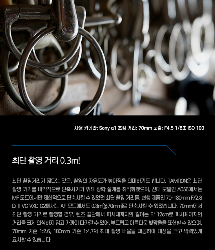70mm 구간: 30cm (렌즈 끝에서 약 12cm 거리에서도 초점이 잡힙니다!)