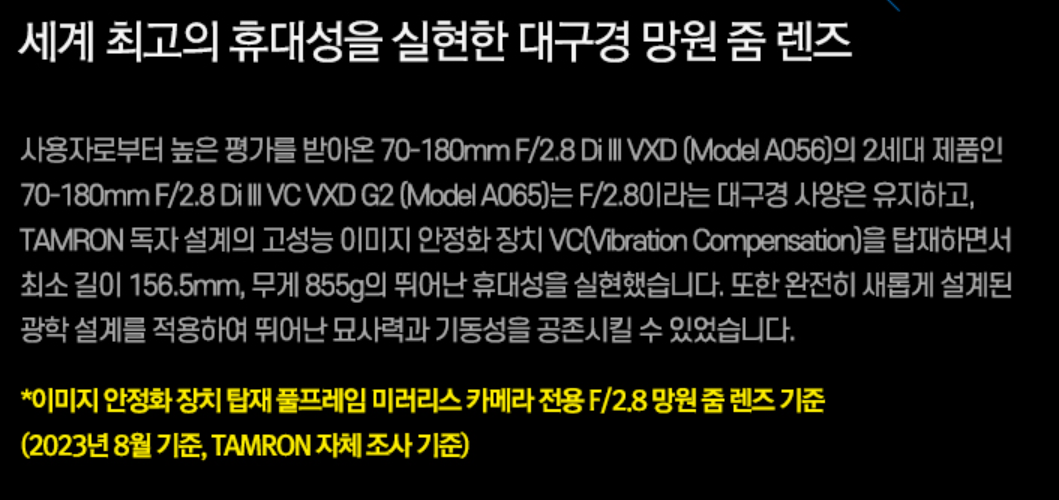더 이상 고민할 필요가 없는 70-200mm급의 최고의 대안, 탐론 70-180mm G2였습니다!